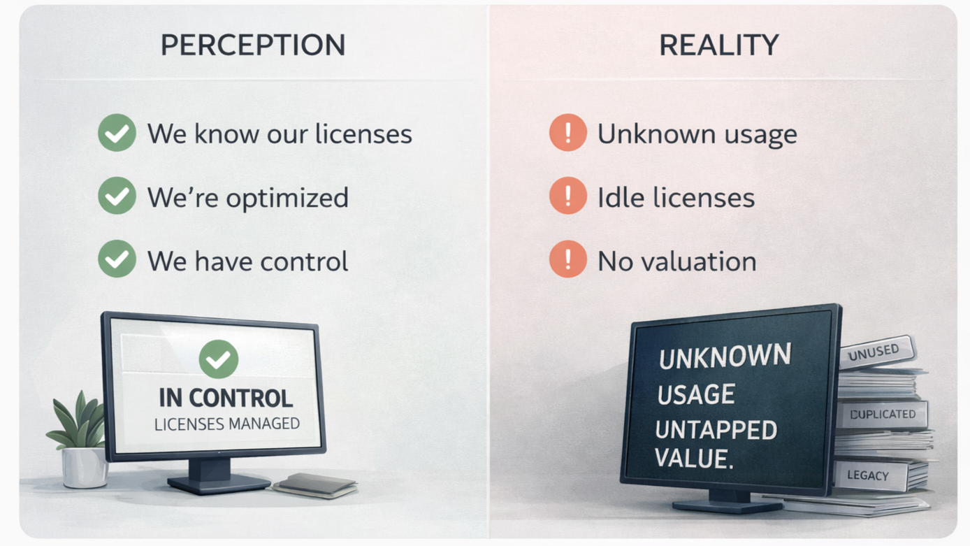 Across industries, software spend is becoming less predictable, less flexible, and increasingly disconnected from actual usage. At the same time, significant value remains locked within existing license portfolios—unseen, unmeasured, and unutilized.