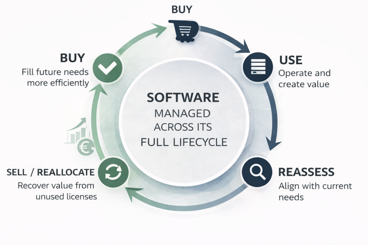 On one side, unused licenses can be divested, unlocking capital that would otherwise remain dormant. On the other, new requirements can be fulfilled more efficiently through the secondary market, reducing overall spend without compromising operational needs.